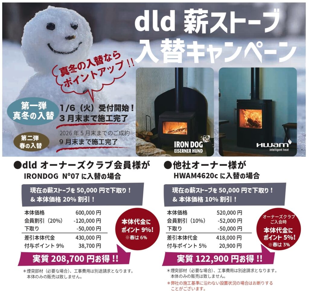 このたび真冬の薪ストーブ入替キャンペーンを行なうこととしました!