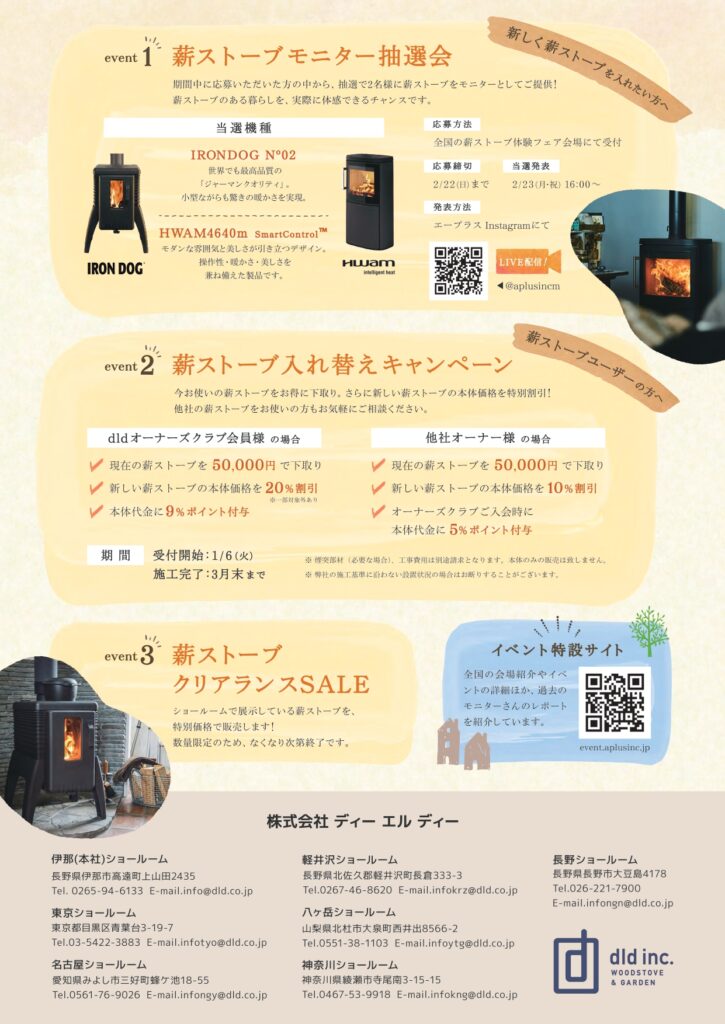 dldも加入する全国のエープラスグループ30箇所で開催する、全国一斉薪ストーブ体感フェアを今年も開催します。